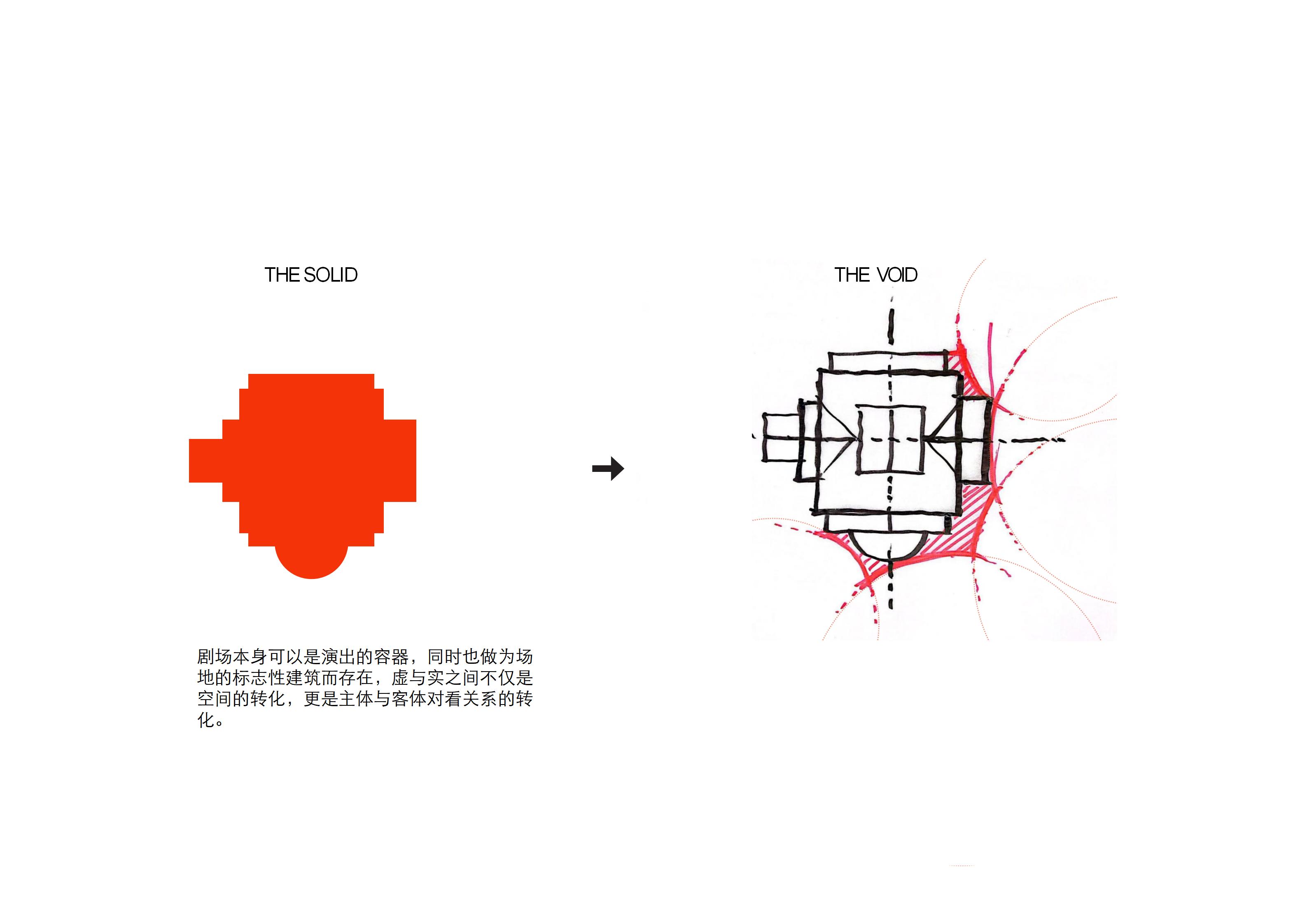 The theater itself can be a container for performances while also serving as a landmark building for the site. The interplay between void and solid is not only a transformation of space but also a transformation of the viewing relationship between subject and object.